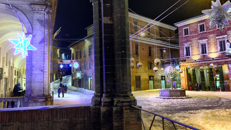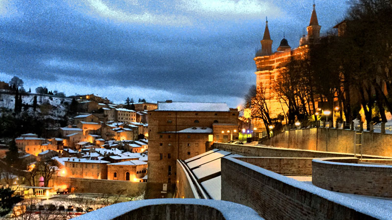 Urbino, la Piazza innevata Ph Paolo Mini