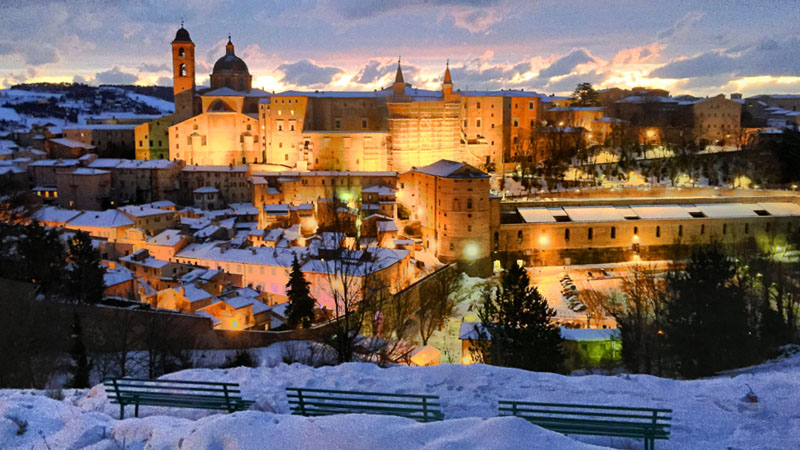 Urbino, panoramica innevata Ph Paolo Mini